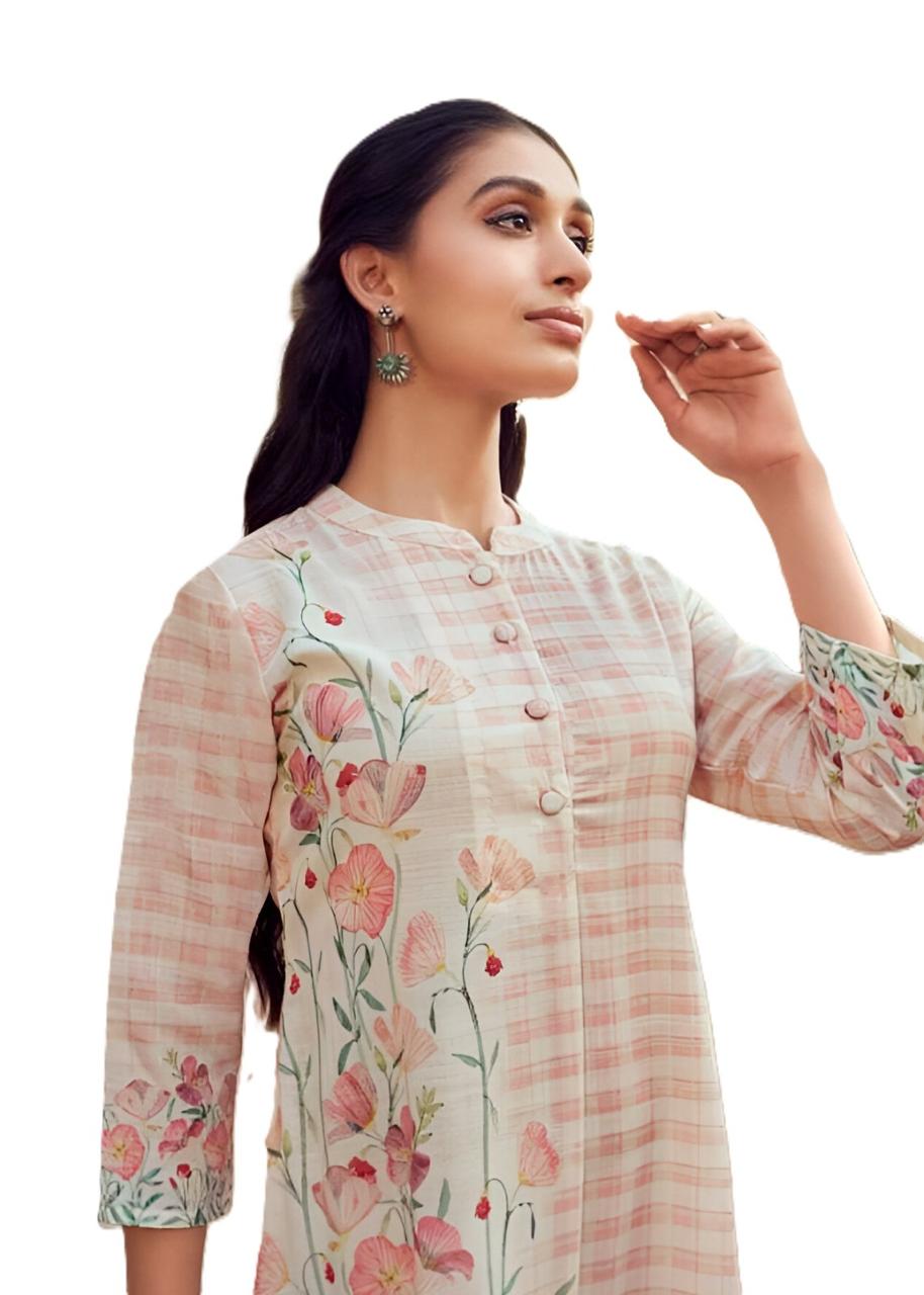 DESIGN FEATURES: Floral printed cotton kurti in mint green with pink and...
