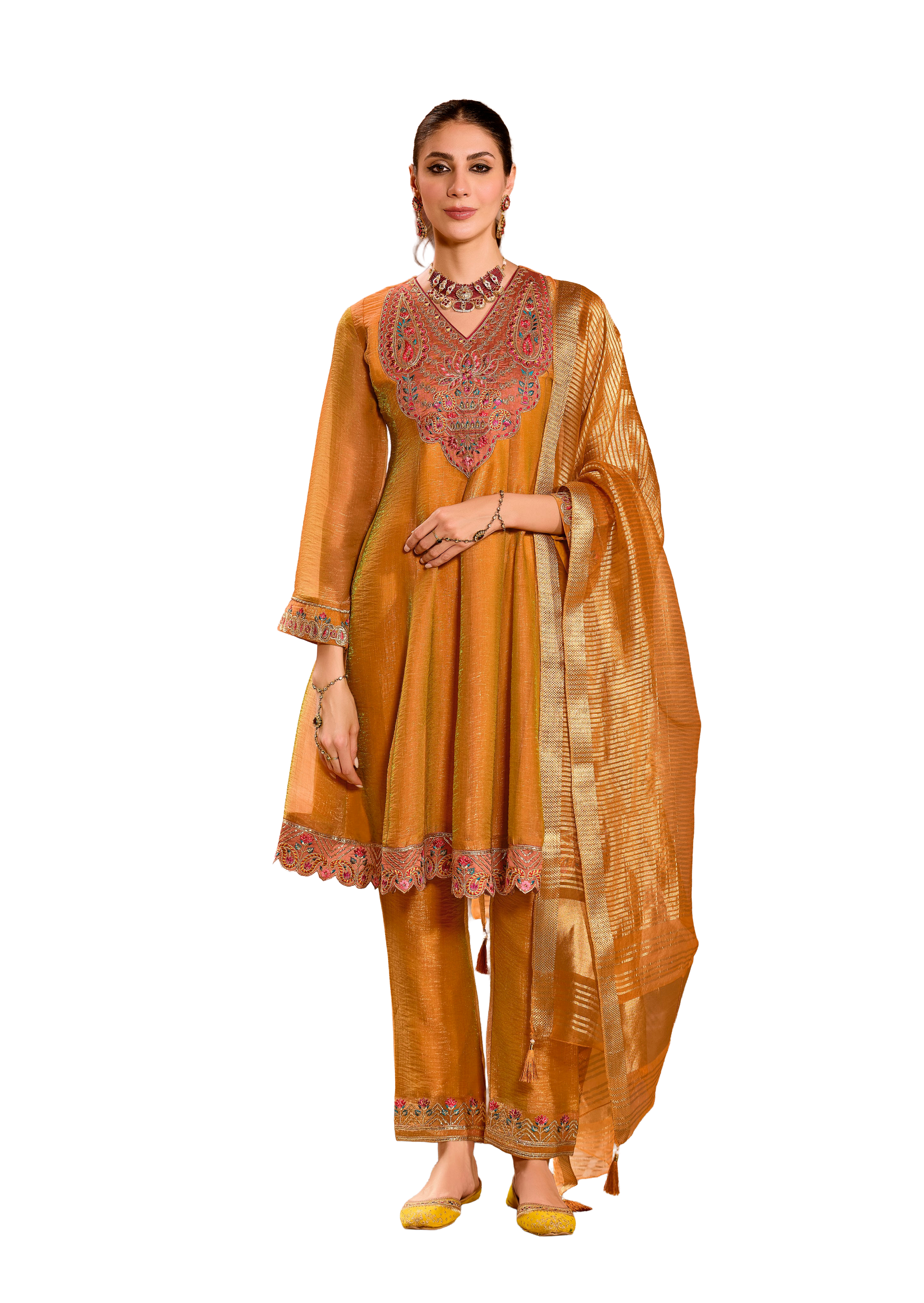 • EXQUISITE EMBROIDERY: Intricately embroidered neckline and yoke featuring vibrant floral motifs in pink, green, and gold, adding a touch of traditional elegance to this Anarkali kurta